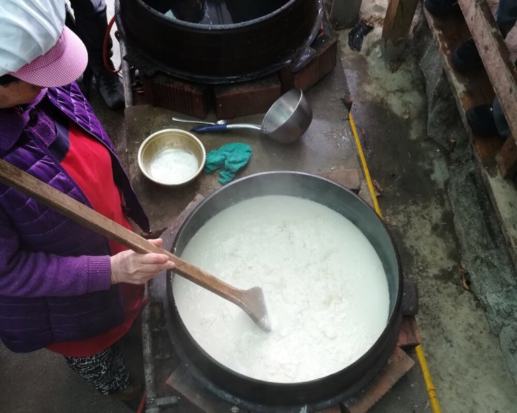 Il composto ottenuto viene messo all’interno di un pentolone contenente acqua salata, che ha la funzione di addensante. Infine, dopo diversi minuti sul fuoco, il prodotto viene pressato per eliminare l’acqua in eccesso.