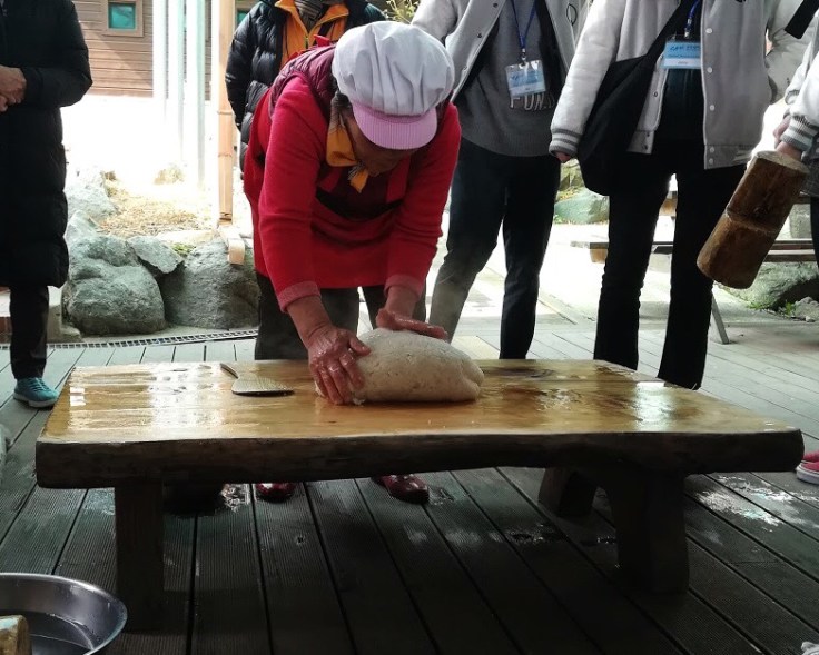 Successivamente il composto viene passato in una farina di fagioli e tagliato in piccoli pezzi, le cosiddette torte di riso.