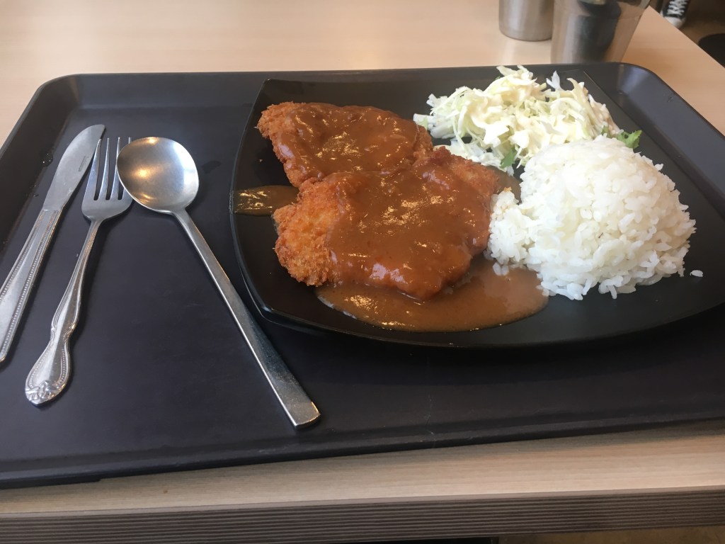La cotoletta in sé non era male, ma la salsa era immangiabile. Un sapore di piedi… bleah! Il riso e l’insalata molto buoni.
